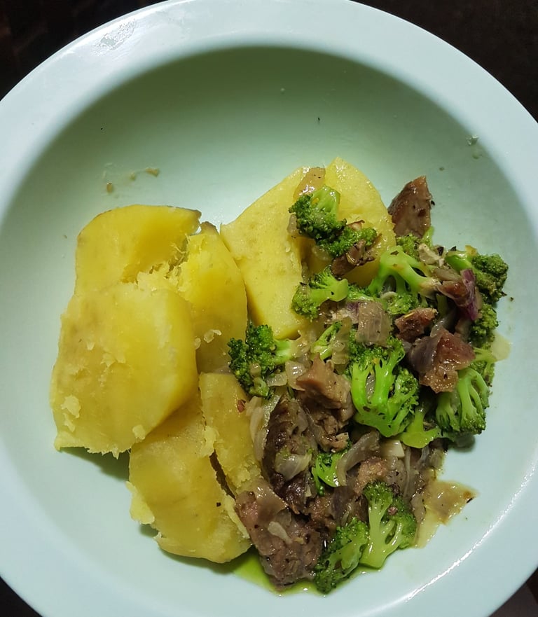 . Dice the beef and boil with a pinch of salt, chopped onions and spices of choice